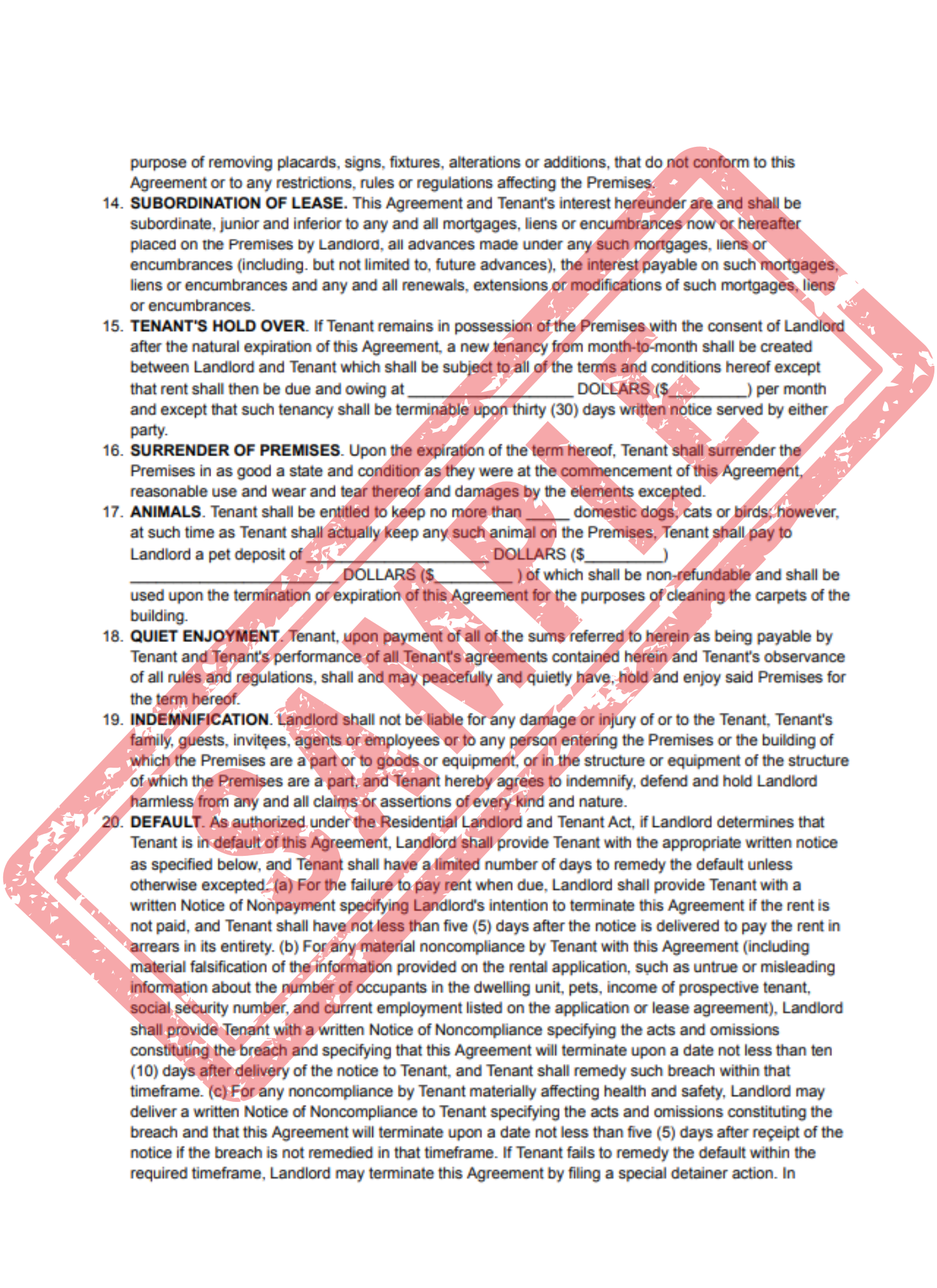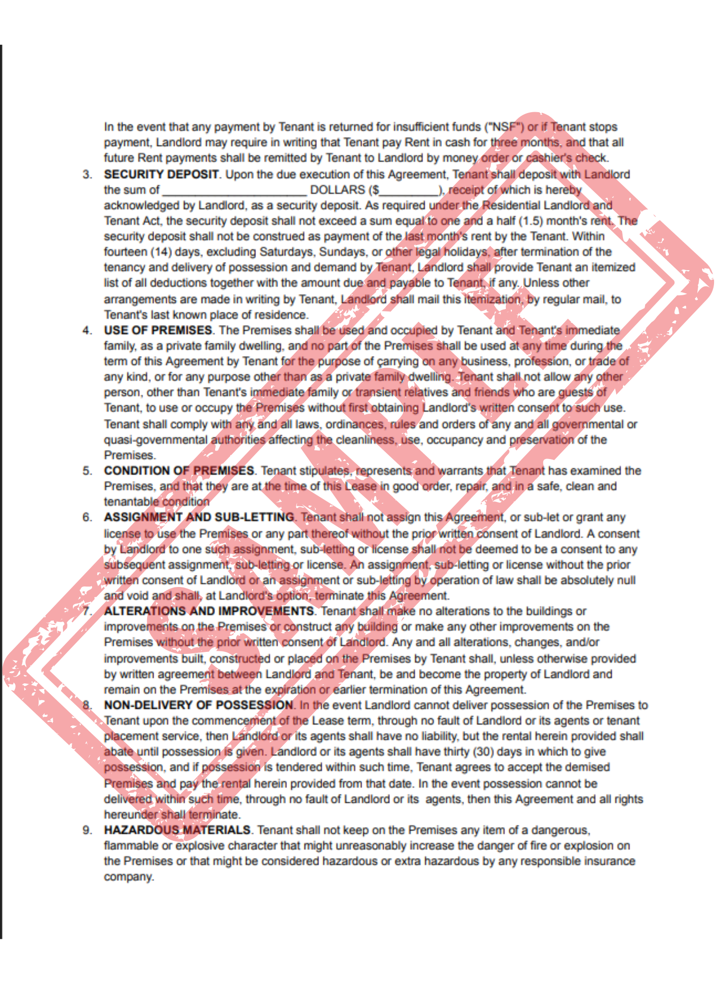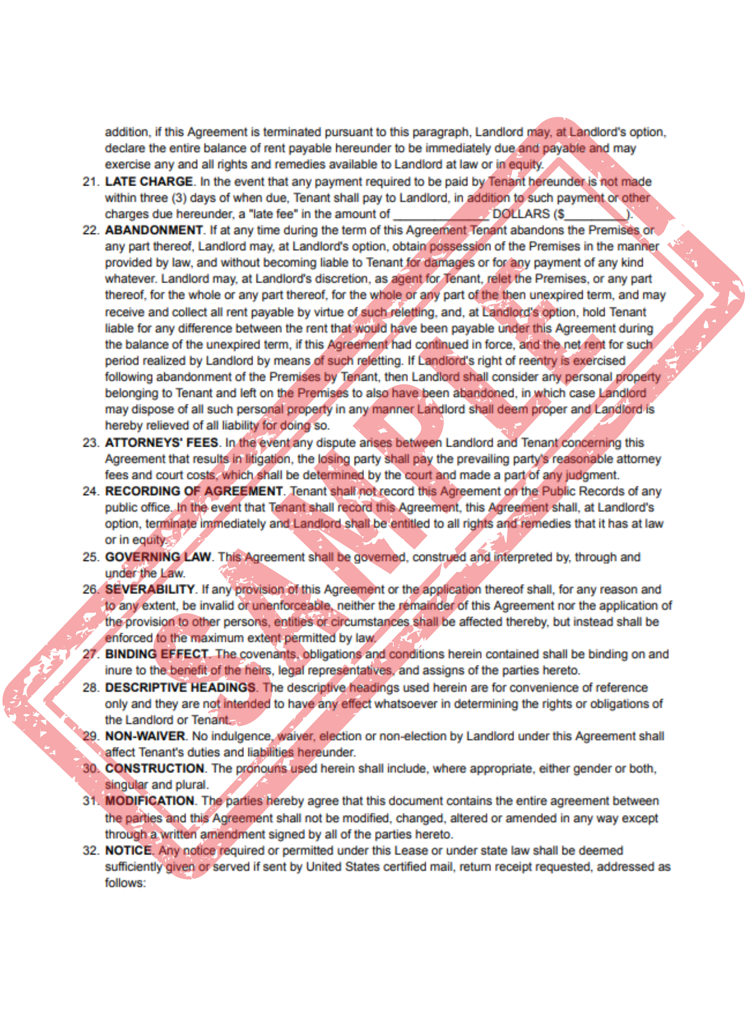 Below is a preview of all the .PDF documents included in our landlord Lease Form Package. We have designed each contract and form to protect you and still be compliant with any state.